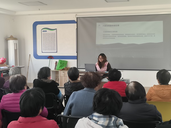 首先,妇联工作人员聚焦老年人认知健康核心需求,针对性普及认知衰退的常见信号、预防关键与科学应对方法。讲解内容紧扣日常场景,既澄清“年纪大了忘事就是老年痴呆”“认知衰退无法改善”等常见误区,也分享了“认知保护三部曲”:脑力训练方面,推荐背诵诗词、玩数独、打麻将等趣味活动,通过持续脑力刺激延缓认知退化;饮食调理方面,分享认知友好型食疗方,如核桃黑芝麻糊、深海鱼豆腐汤、蓝莓山药等,强调补充Omega-3脂肪酸、维生素B族的重要性;在生活习惯方面,建议规律作息、适度运动(如散步、太极拳),并重点强调社交互动对认知健康的积极作用,鼓励老年人多参与休闲活动、多与邻里交流。