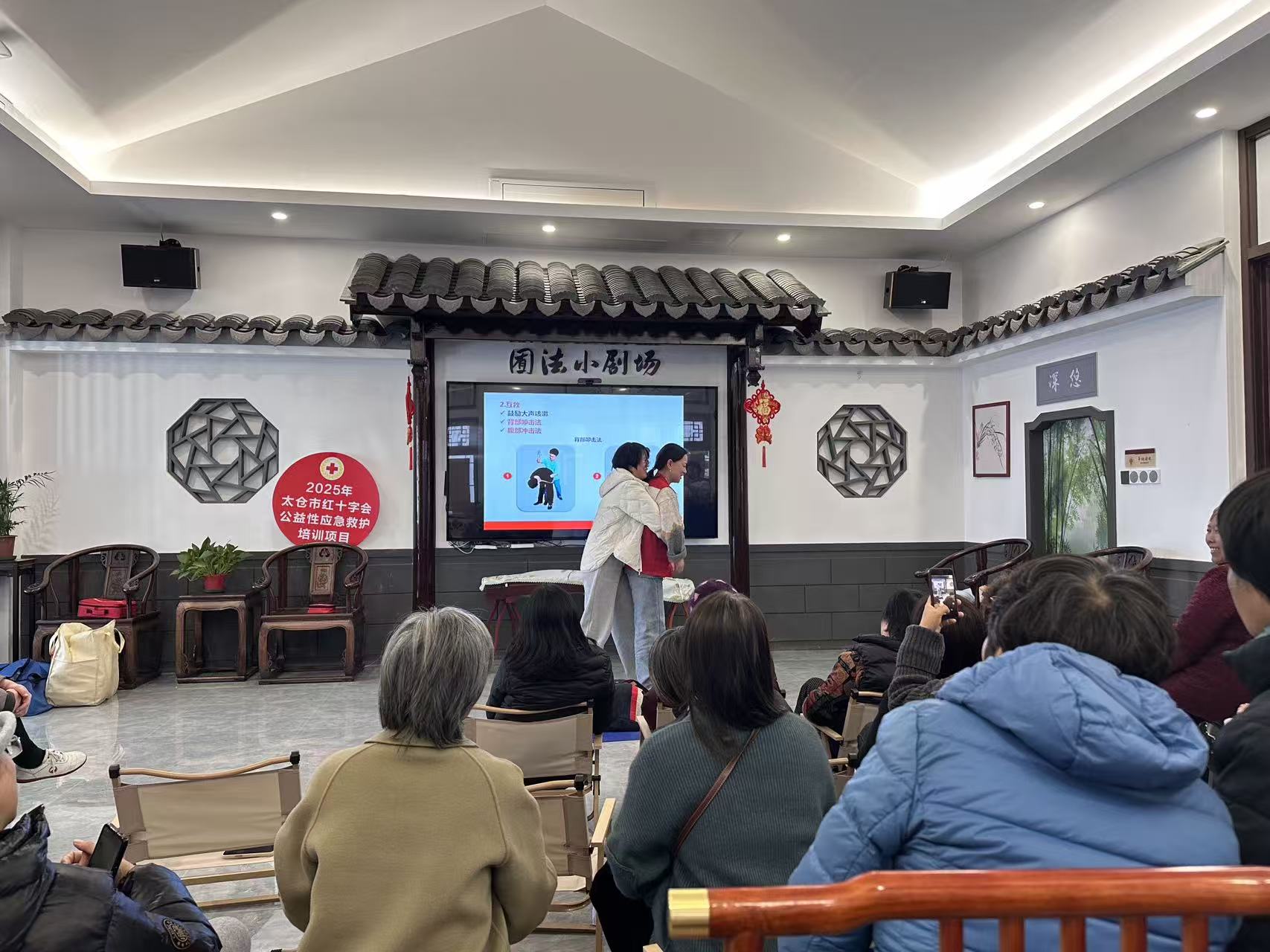 2025年11月18日,银杏社区妇联联合太仓市红十字会在社区“囿法小剧场”共同举办了一场公益性应急救护培训活动,吸引众多社区居民积极参与。本次培训内容实用、形式生动,涵盖多项急救技能,并在结束后组织考核,进一步夯实居民应对突发状况的能力。