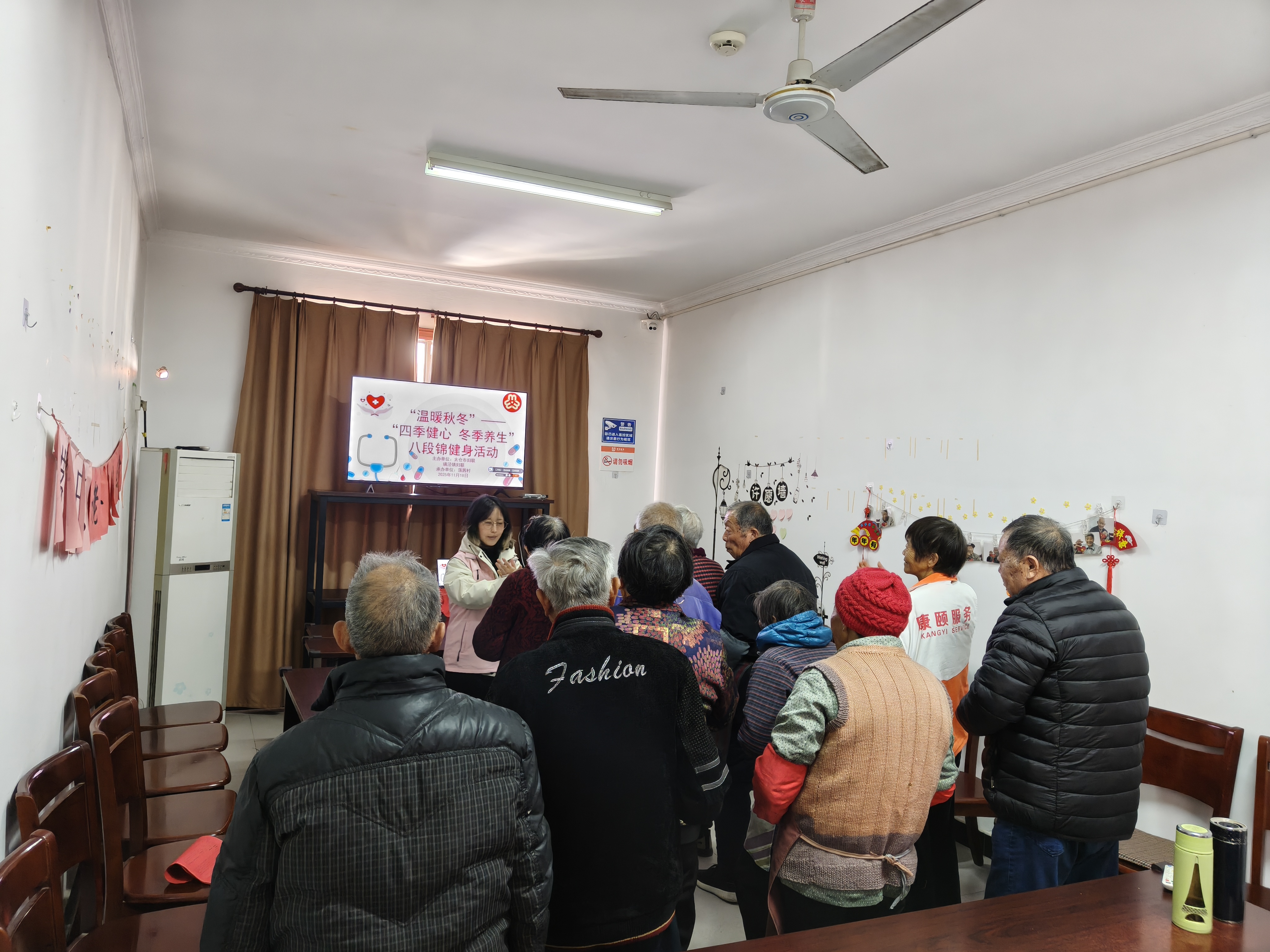为提升村民全民健身意识,弘扬传统养生文化,11月18日,荡茜村开展“温暖秋冬”——“四季健心冬季养生”八段锦健身活动,村民们跟随志愿者一起专注跟练。抬手、转身、屈膝等动作,让村民的身体得到舒展,精神得到放松。大家纷纷表示,冬天到了,这样的健身活动非常适合老年人,以后要多多参与,锻炼身体。