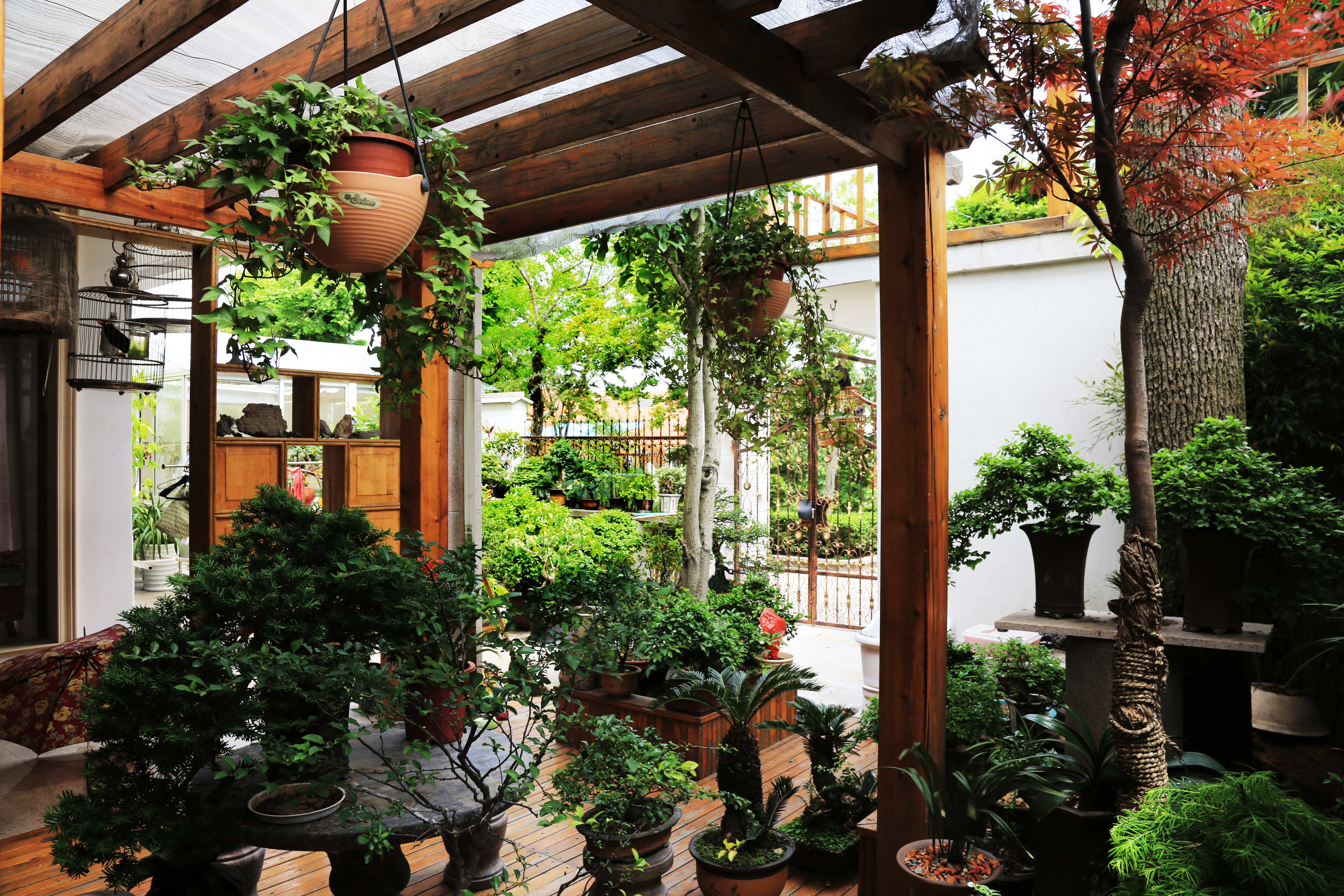 周原年轻时就爱好摄影和盆景艺术,庭院里摆放着他一手栽培的盆景,花木交错相应,廊间鸟笼参差,鸟鸣声悦耳不绝,置身其间仿佛来到了清新的自然天地,顿生心旷神怡之感。两百余盆盆景造型各异、郁郁葱葱,伴随着四季的变化,各色花卉轮番展示着每个季节所特有的韵味。典雅的家居环境和墙上悬挂的“文化之家”四个大字,清晰地透露出他们一家热爱自然、痴迷摄影、寄情文艺的风雅品性。