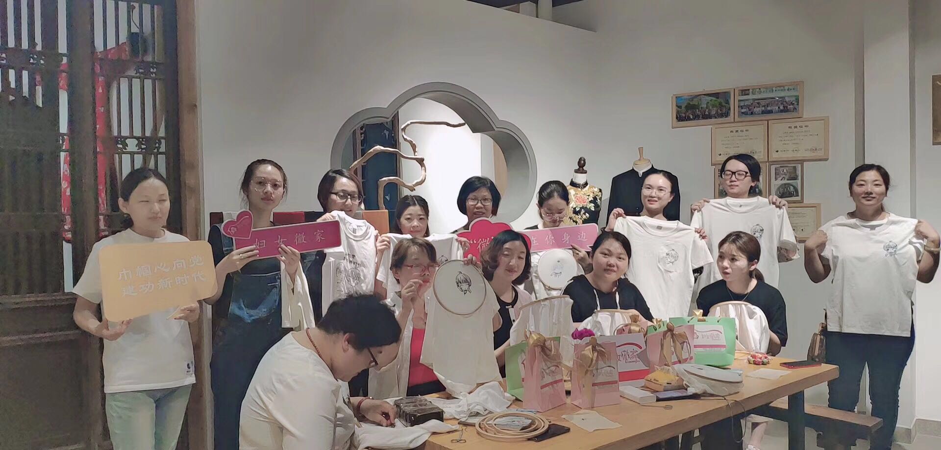 当天下午一点,妇女姐妹们来到绣裳花妇女微家,桌上已经摆好了一份份印有苏小慧和苏小绣图案的T恤、手绣体验圆绷以及精美的微家包装袋 。姐妹们选好图案后在老师的指导下开始绣了起来,现场气氛热烈,大家绣制的十分认真。